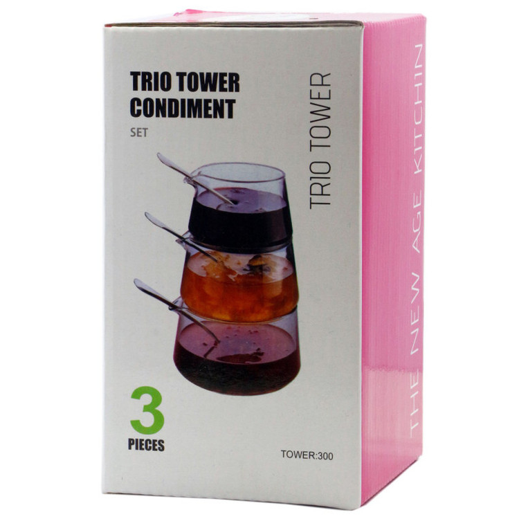 تنوع بالای وعده غذایی صبحانه کار چیدمان میز را سخت میکند. برج مربا خوری به شما این امکان را به شما میدهد که از سه نوع مربا و یا انواع خامه انواع پنیر در یکی از طبقه های ظرف مربا خوری استفاده کنید همچنین بعد از اتمام صبحانه برای جمع کردن میز صبحانه کار شما اسان تر میشود فقط کافی است طبقه های ظرف را رو هم گذاشته تا هم از دکور زیبا ان استفاده کنید و هم در بهینه سازی فضا یخچالتان. با توجه به قابلیت طبقاتی بودن برج مربا خوری و استفاده تکی ظرف های برج با سلیقه خود یک تنوع رنگی و تنوع طعمی ایجاد کنید تا یک صبحانه لذت بخش در کنار خانوادتان را تجربه کنید. برج مرباتشکیل شده از سه ظرف شیشه ای به همراه یک قاشق در هر طبقه است که روی هم قرار می گیرند. این ظرف مربا به دلیل شیشه ای بودن آن می تواند انگیزه بسیار خوبی به فرزندان کوچک شما بدهد تا با دیدن رنگ های مختلف مرباها اشتیاق بیشتری برای صرف صبحانه داشته باشند. برج مربا مشکل کمبود فضای یخچال را حل خواهد کرد به دلیل اینکه فضای بسیار کمی را در یخچال می گیرد. جنس بدنه برج مربا از بلور شیشه ای (پیرکس می باشد) که دارای سه طبقه ظرف مربا و سه قاشق استیل است که همراه آن یک درب استیل برای ظرف سوم تعبیه شده است. دارای طراحی فوق العاده و زیبا است که می توان در منزل ، رستوران ها و محیط های سرو غذا از آن استفاده کرد.