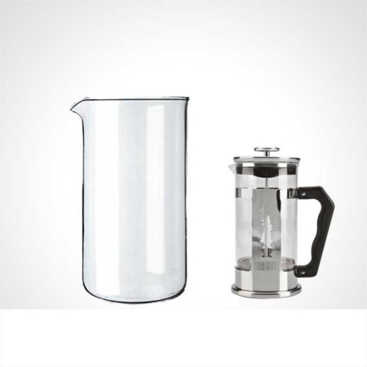 فرنچ پرس ها طرح ها و مدل های خاص مختلفی دارند.یکی از معظلات استفاده از فرنچ پرس، شکسته شدن شیشه داخلی فرنچ پرس است، از این پس خیالتان راحت، ما شیشه یدک فرنچ پرس 350میلی لیتر در فروشگاه اینترنتی عرضه میکنیم. این شیشه دارای ارتفاع 14 و قطر کف 65 میلی متر می باشد. کیفیت شیشه مناسب بوده و دارای شفافیت قابل قبولی است.